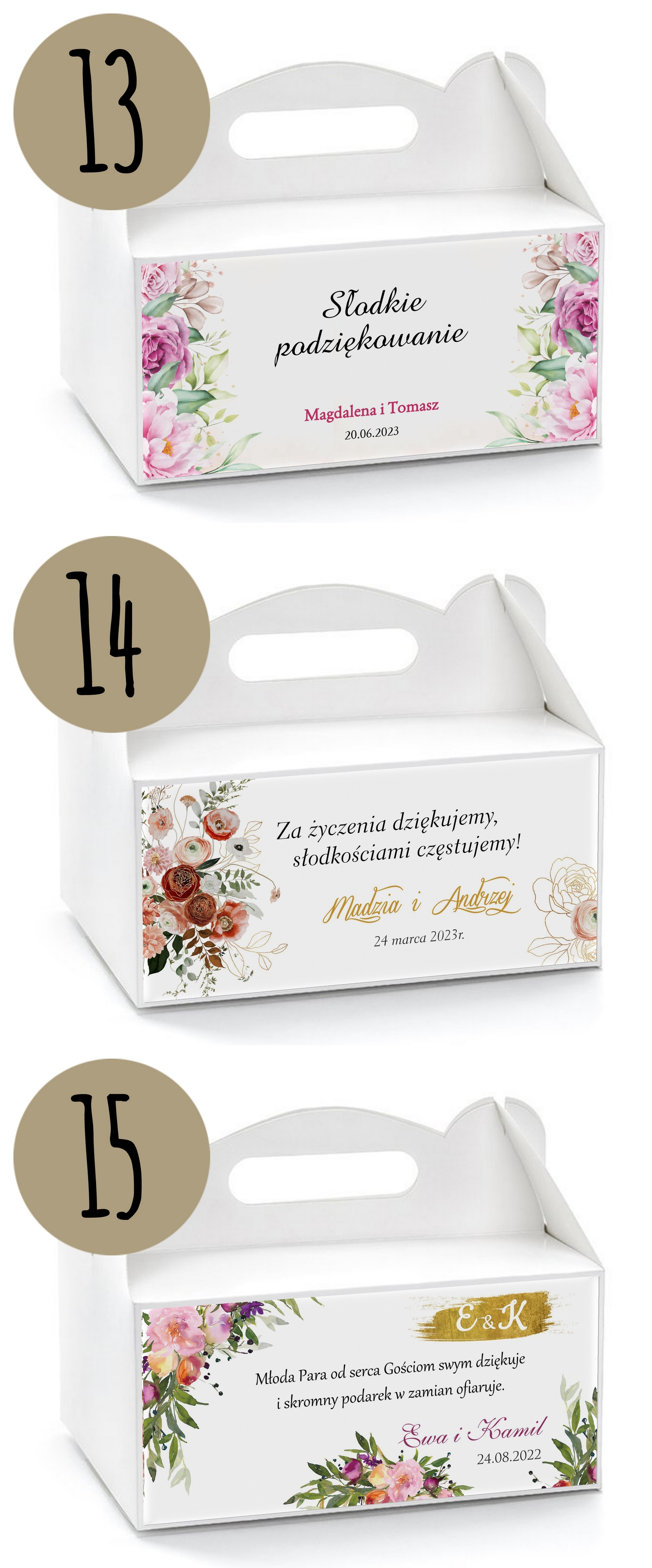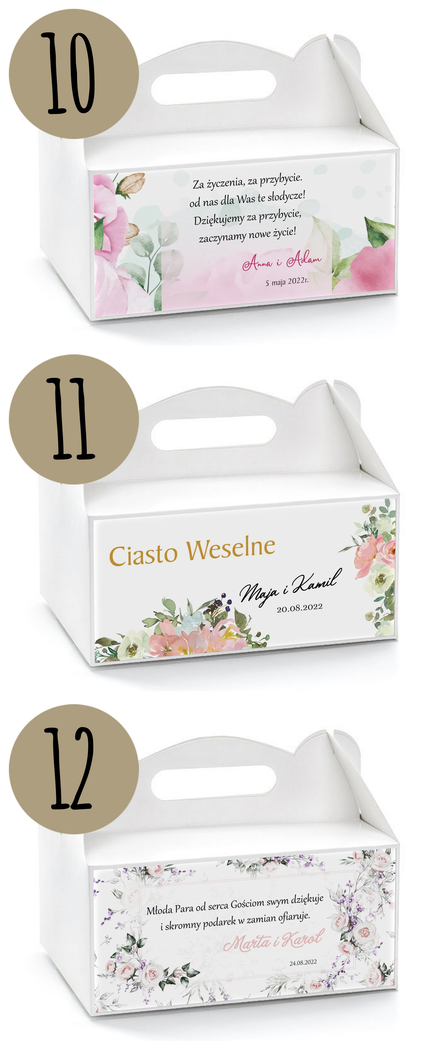 Przykładowe wzory pudełek na ciasto