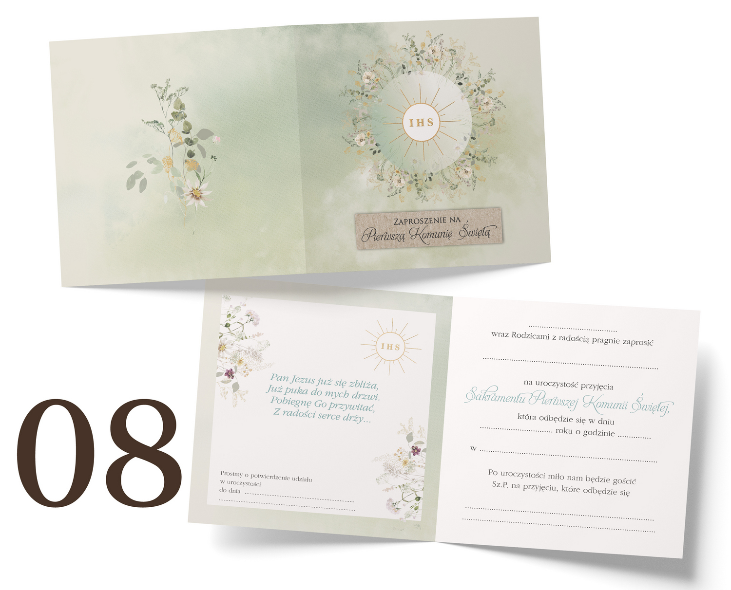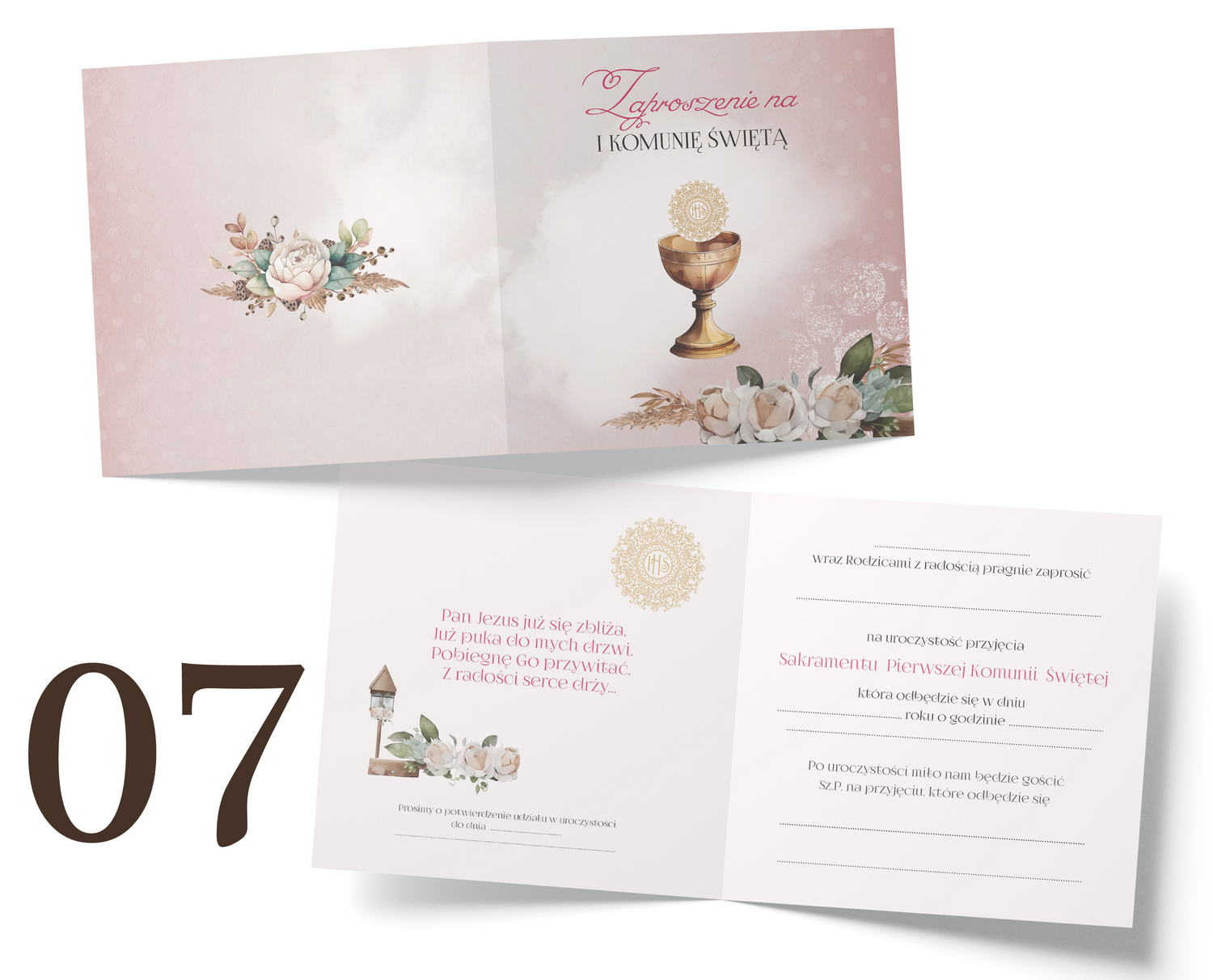 Wzory zaproszeń na Komunię Old boho