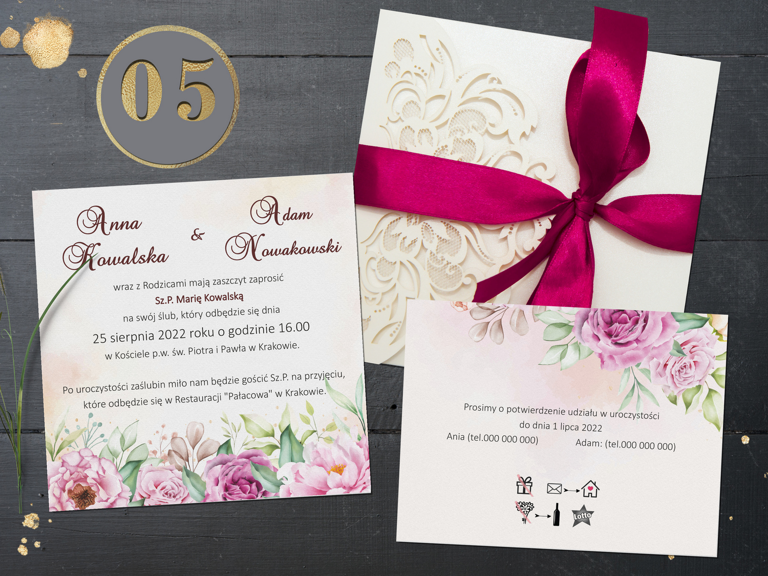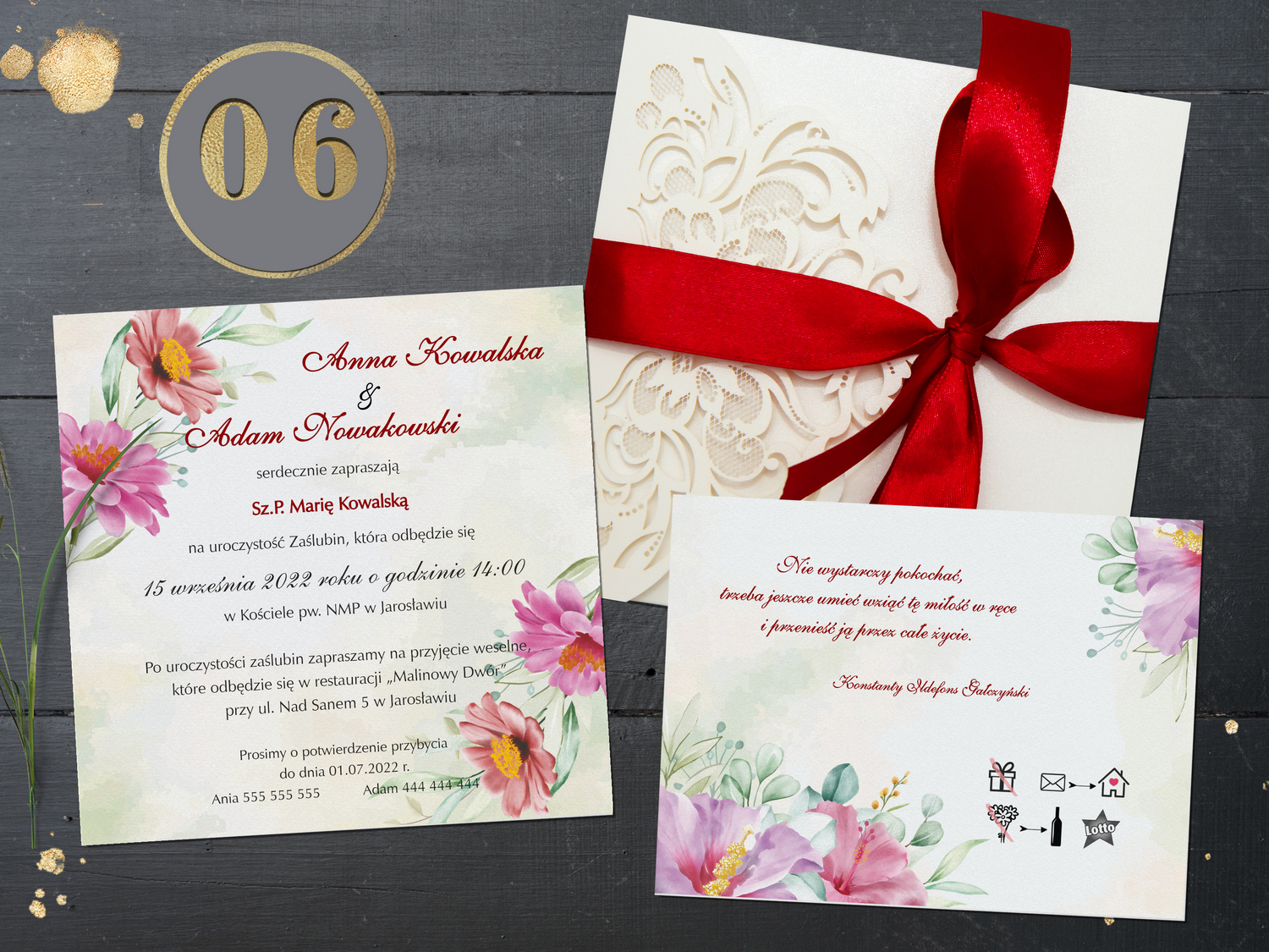 Wzory zaproszeń ślubnych Toskania Flowers