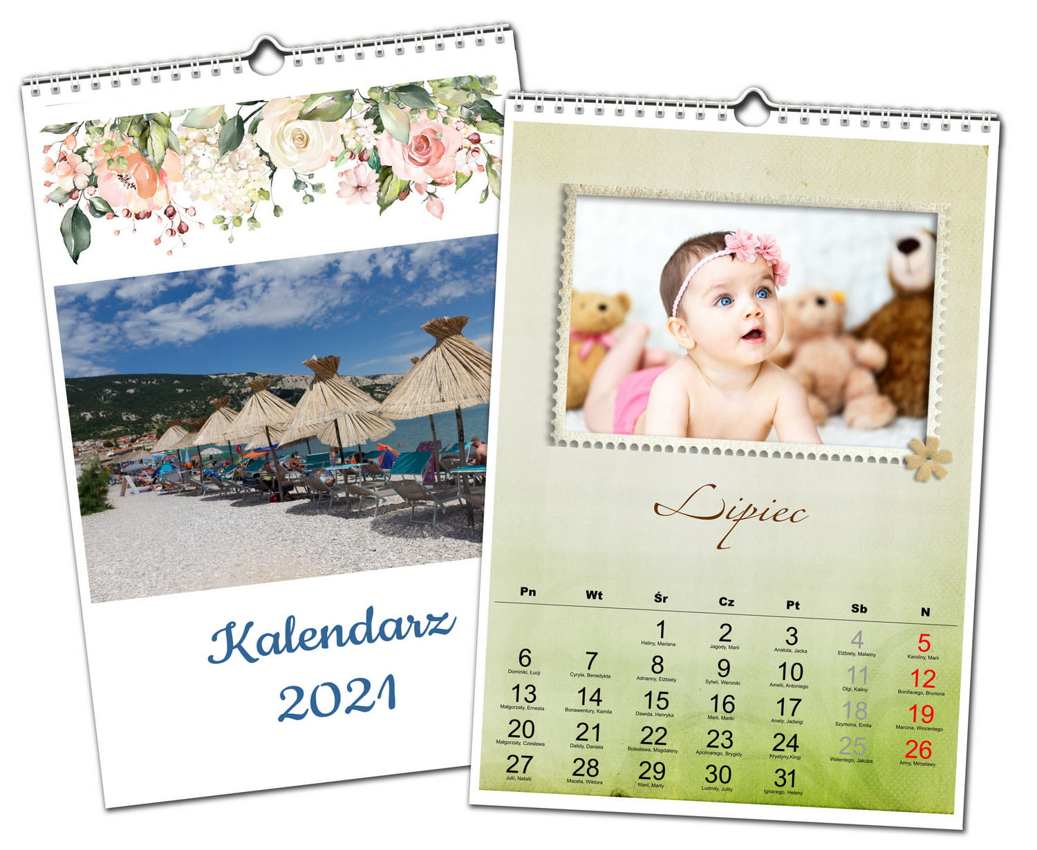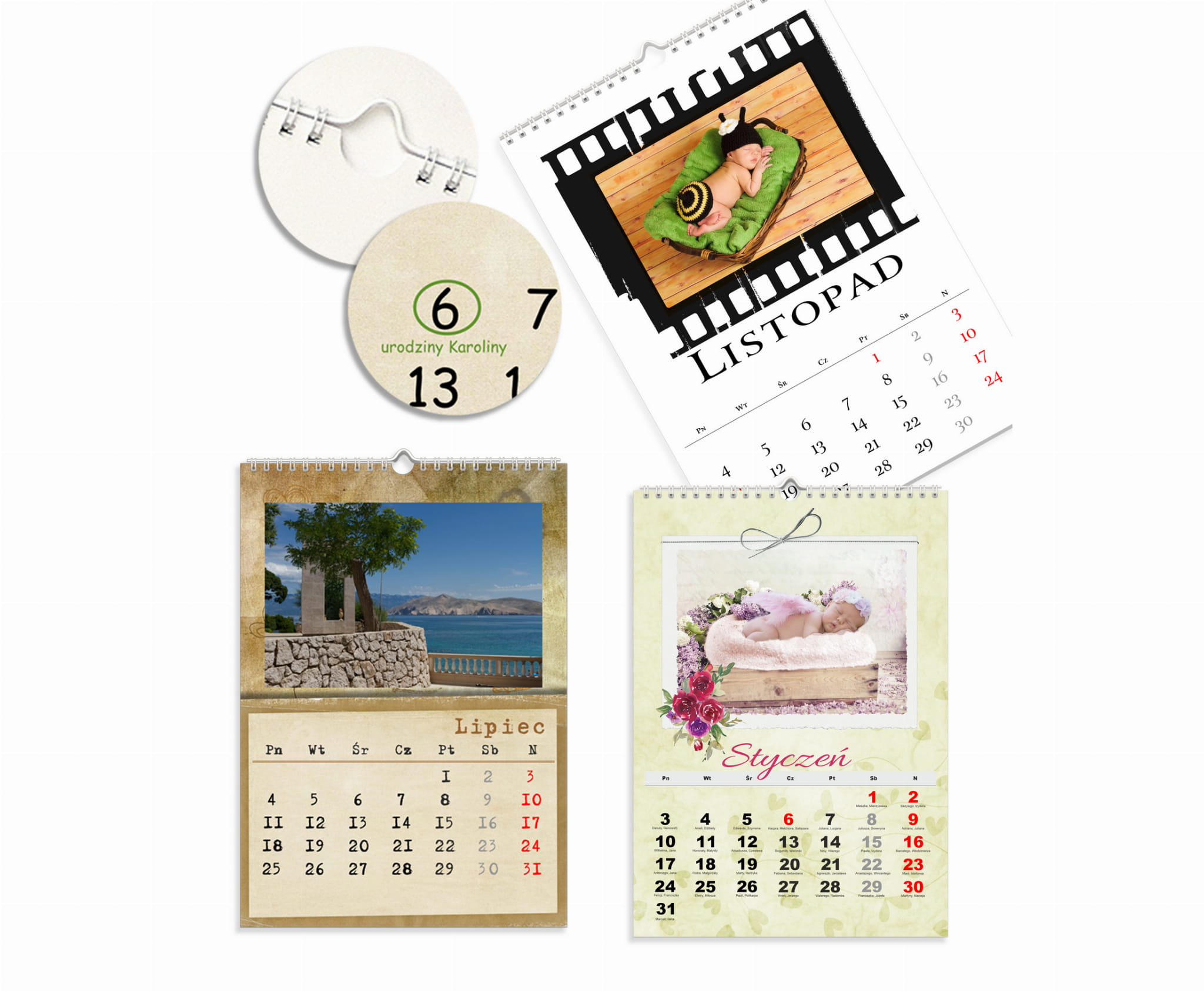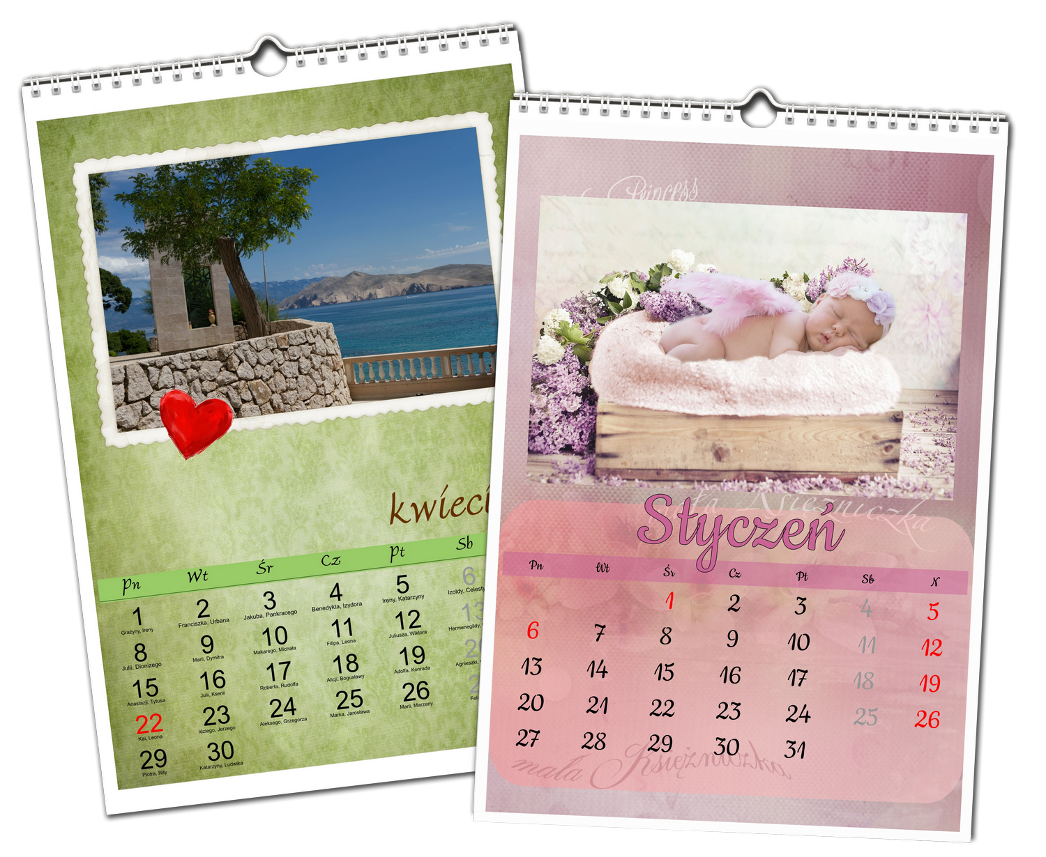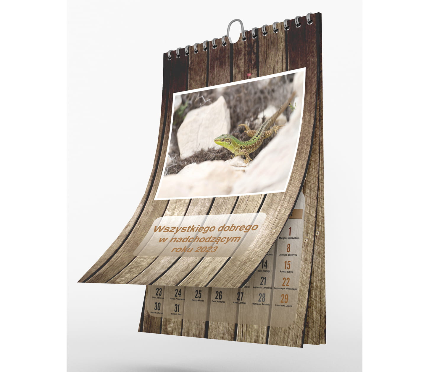 - Możliwość umieszczenia dowolnego tekstu na okładce kalendarza.