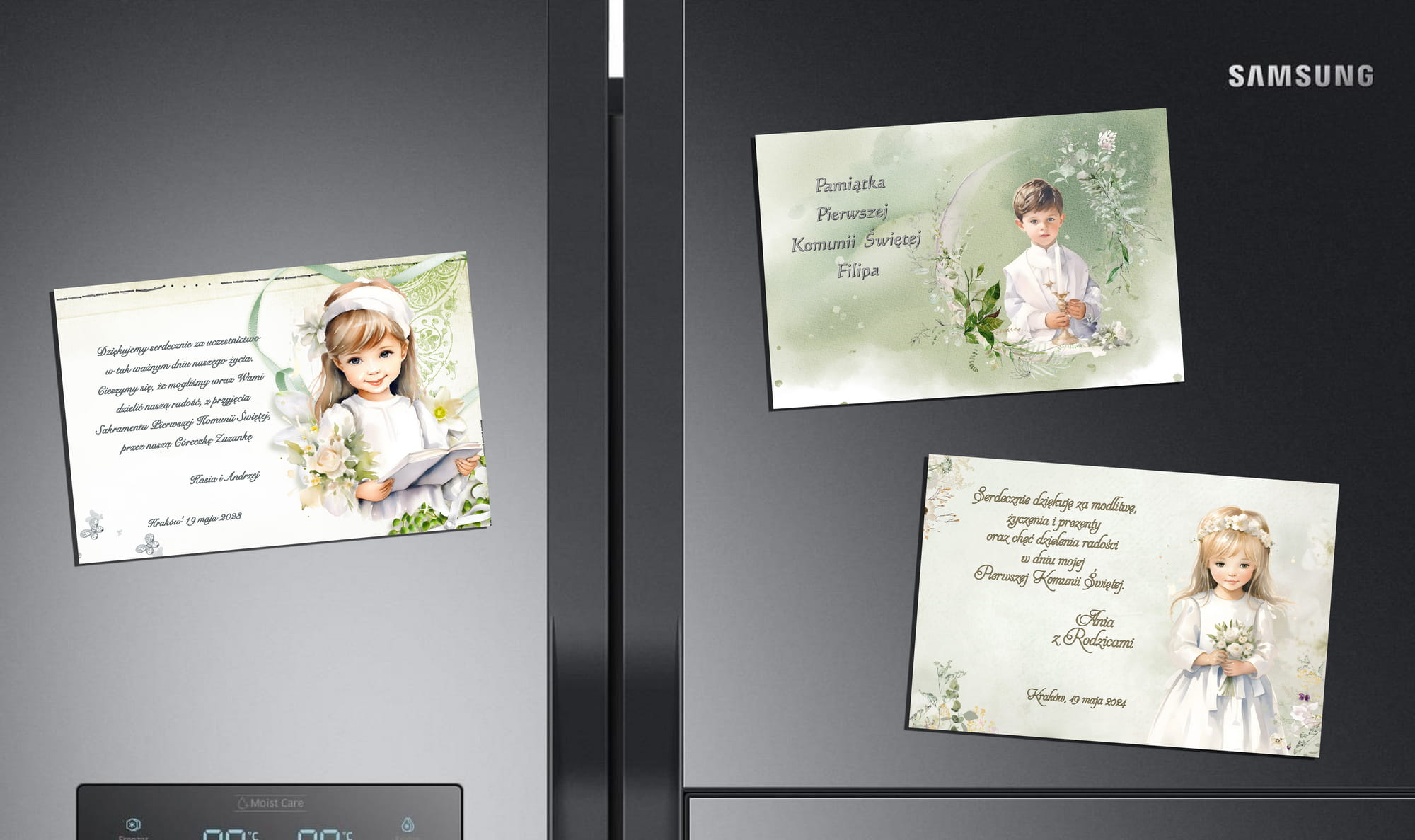 Magnesy - podziękowania dla gości za uczestnictwo w Uroczystości Pierwszej Komunii Świętej.