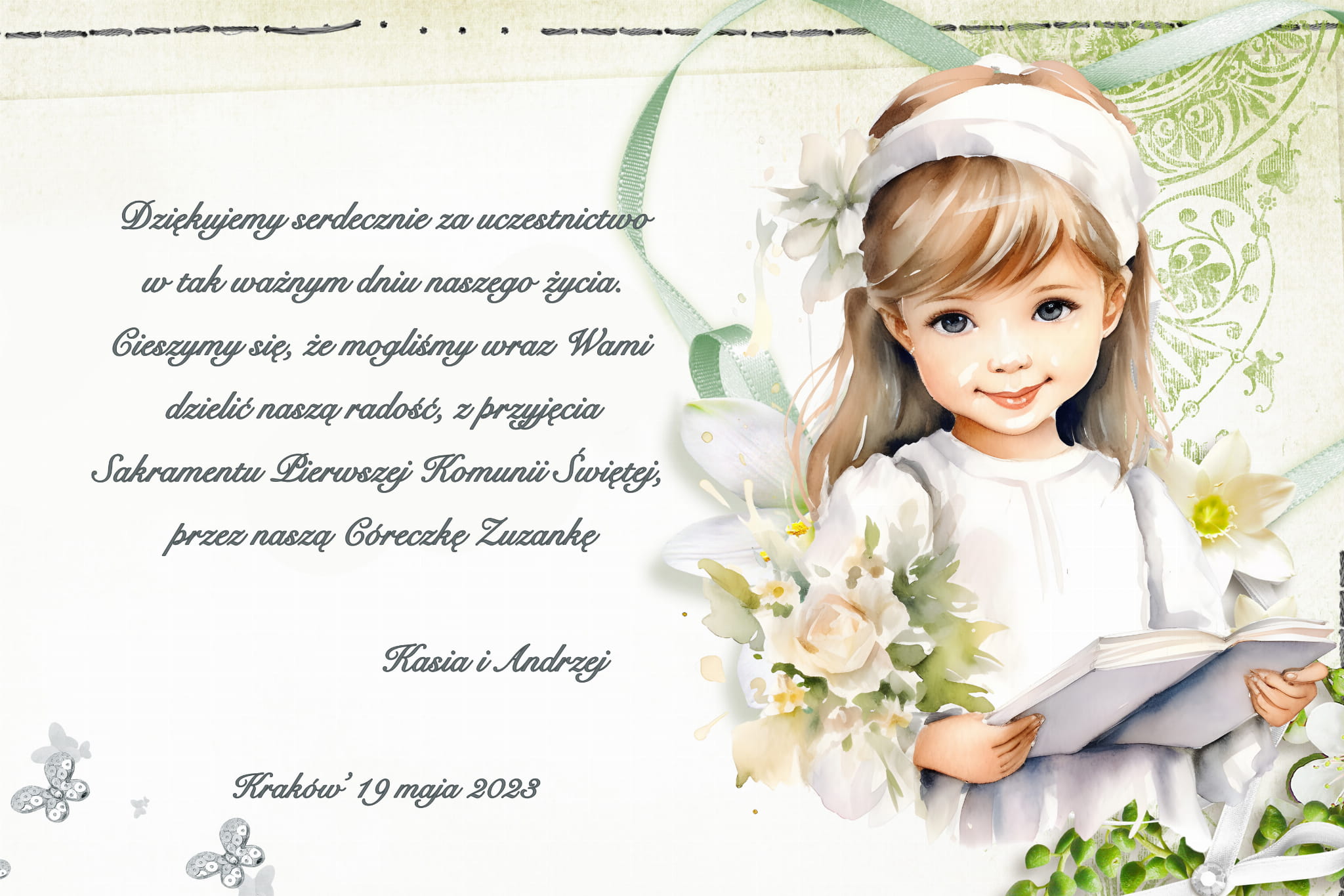 W cenę podziękowań wliczone jest wykonanie projektu graficznego, naniesienie ewentualnych poprawek w projekcie oraz druk podziękowań.