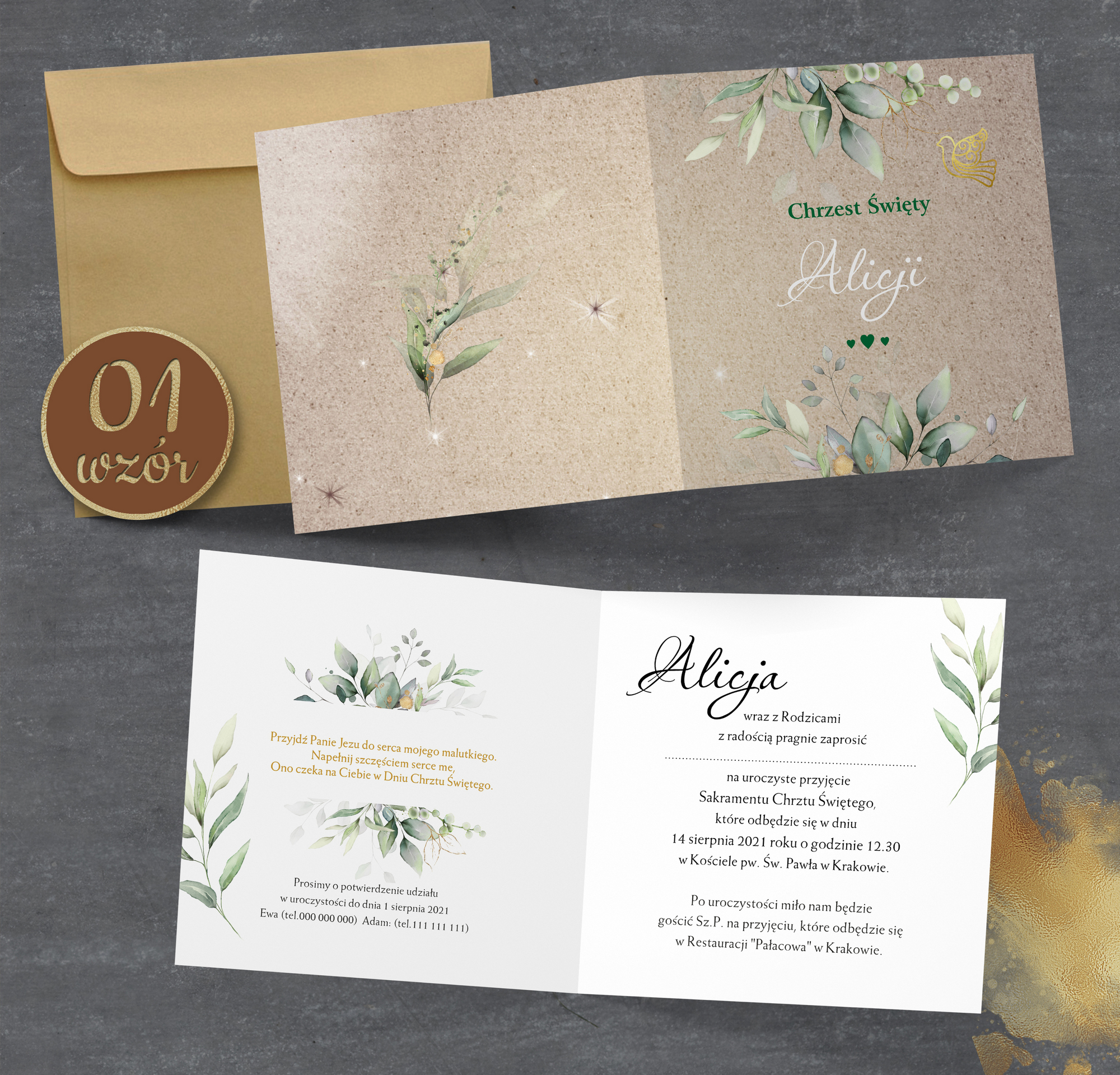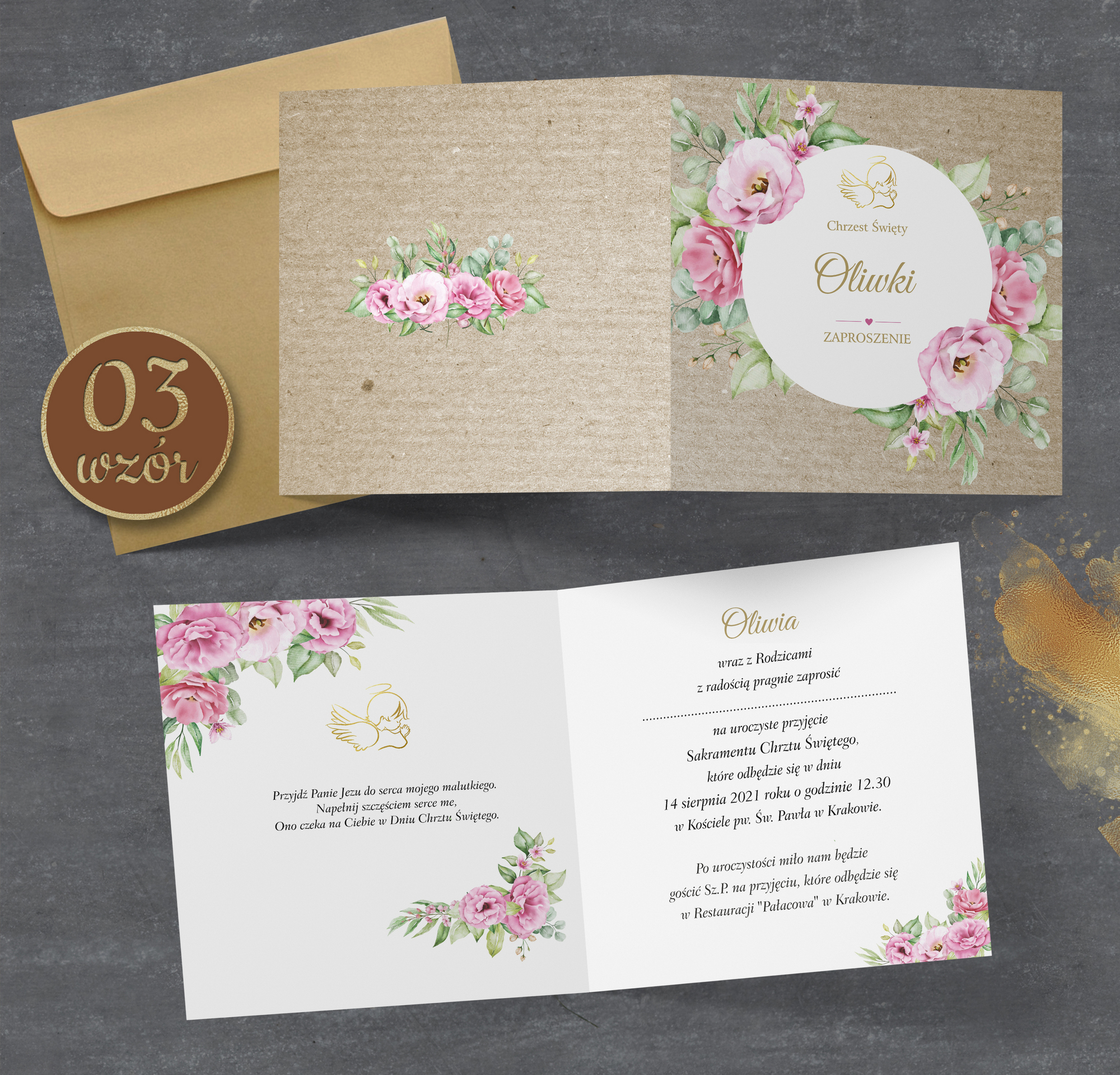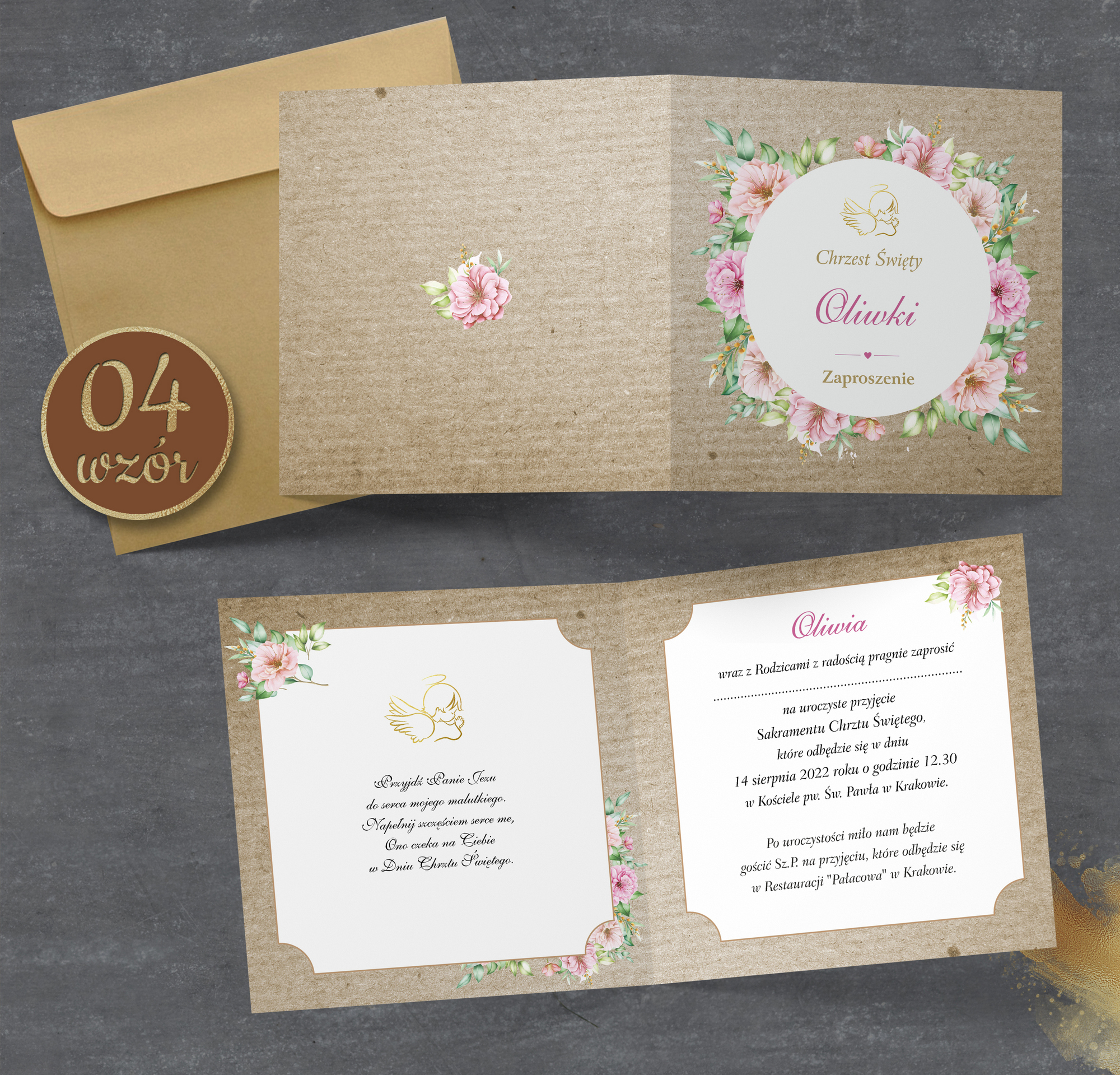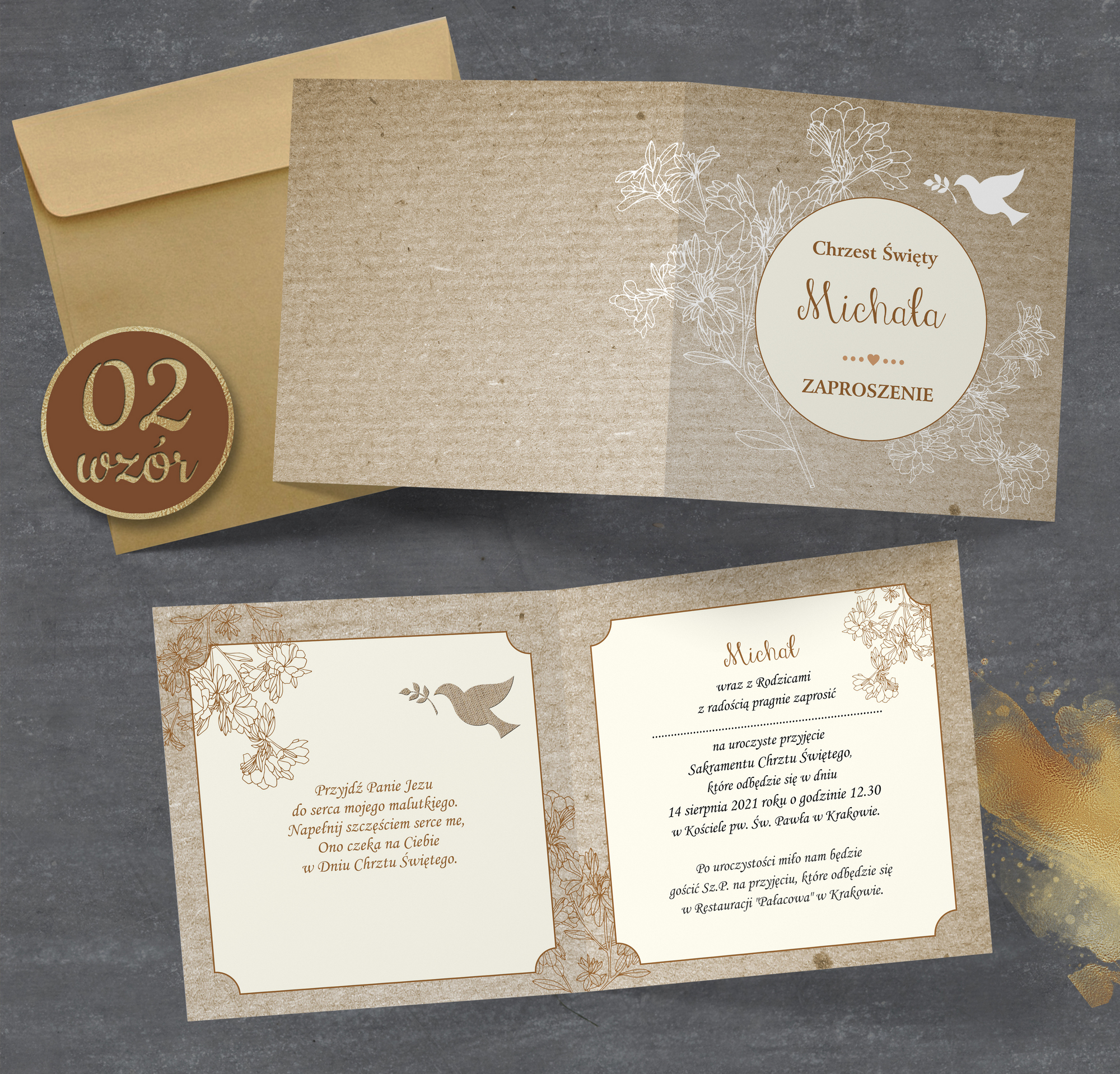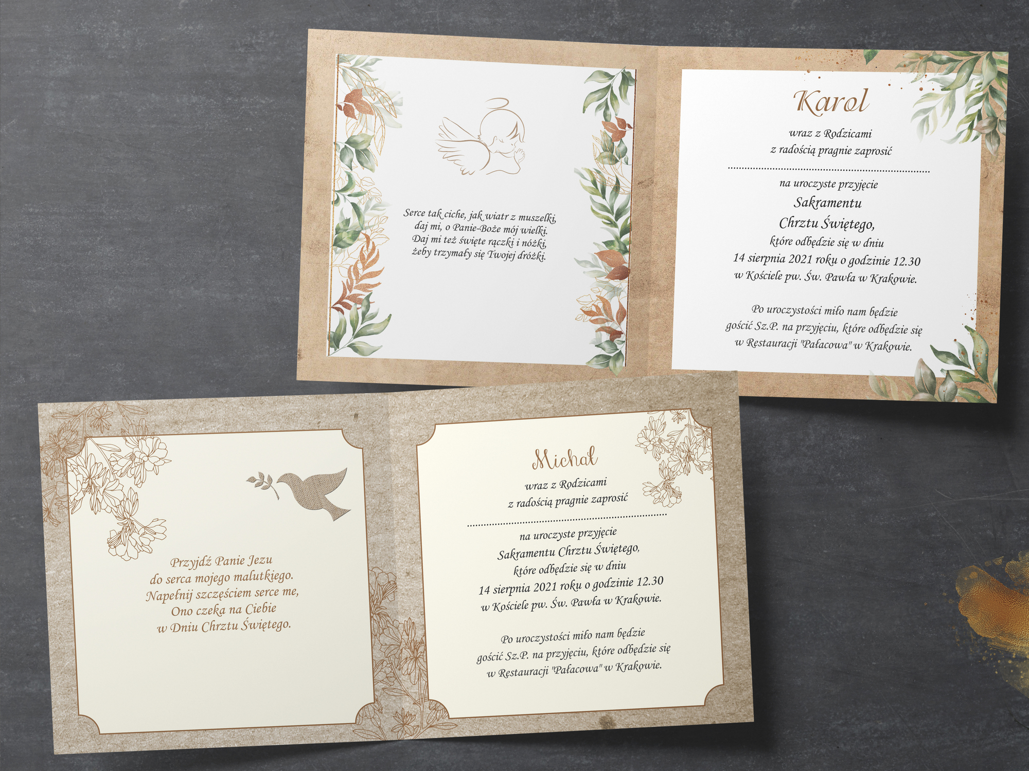 Zaproszenia na chrzest KOLEKCJA "Eko kraft"