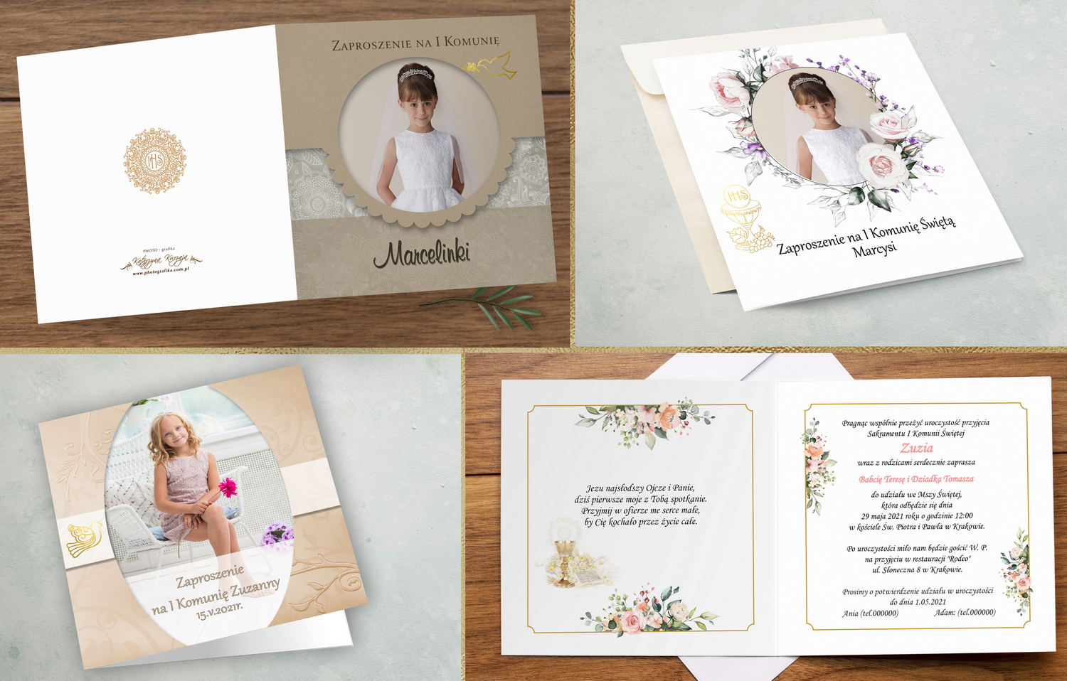 Zaproszenia na komunię foto modern- 60 wzory