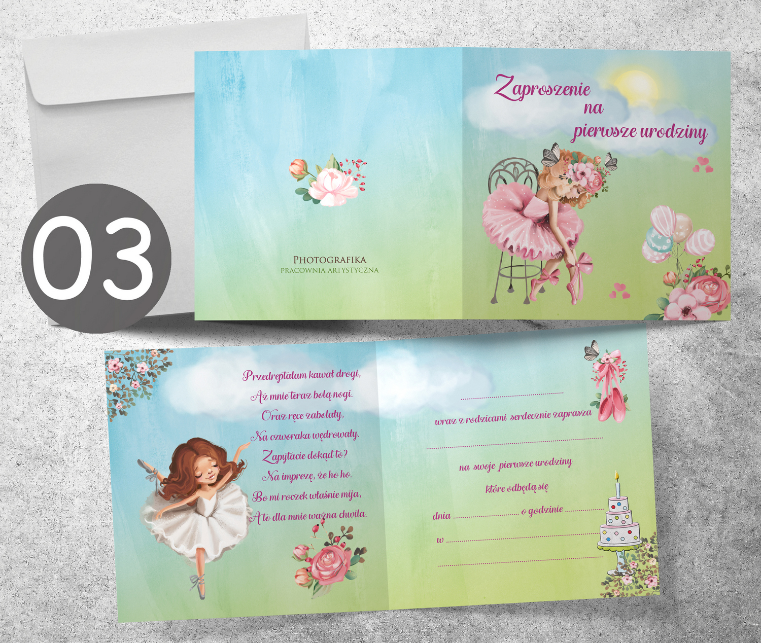 Zaproszenia na roczek KOLEKCJA "Balerina"