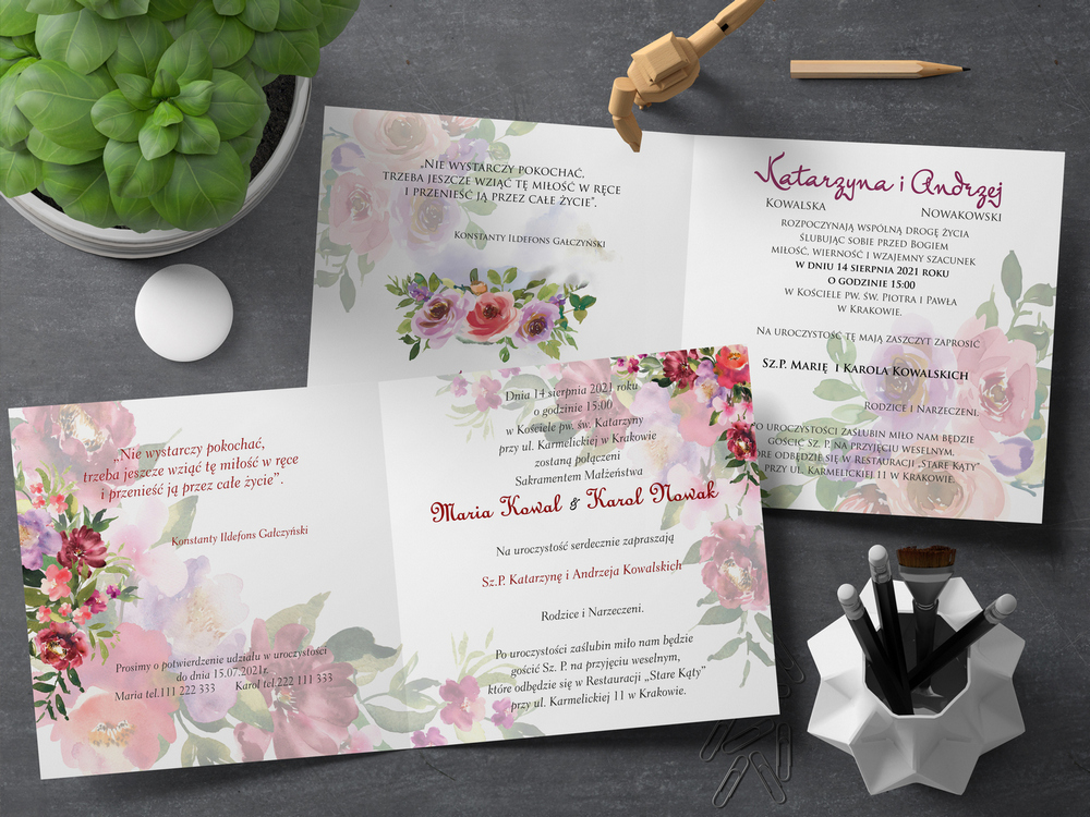 - Zaproszenia mogą być także do samodzielnego wypisania Gości, miejsca, daty (wykropkowane).