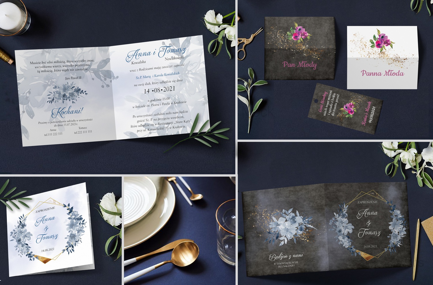 Zaproszenia można dopasować do stylu i tematu przewodniego ślubu. Posiadamy wiele wzorów żeby sprostać wymaganiom Pary Młodej.