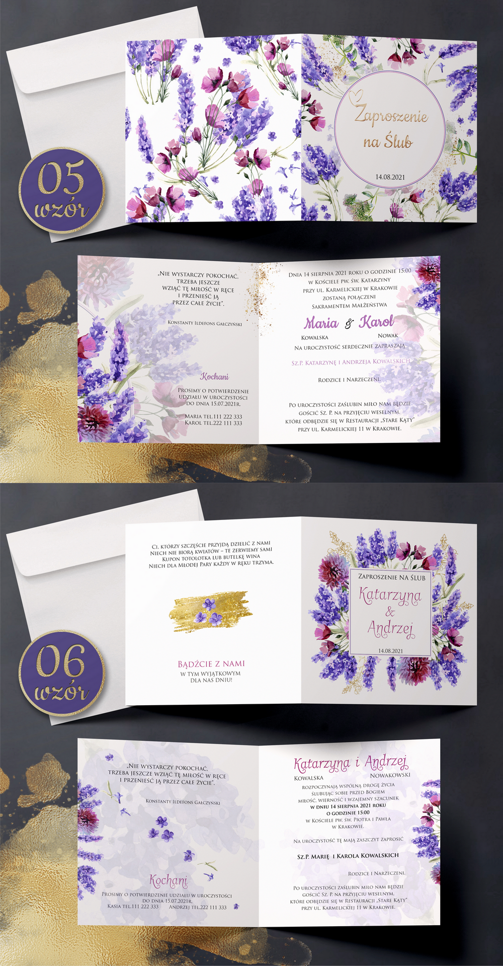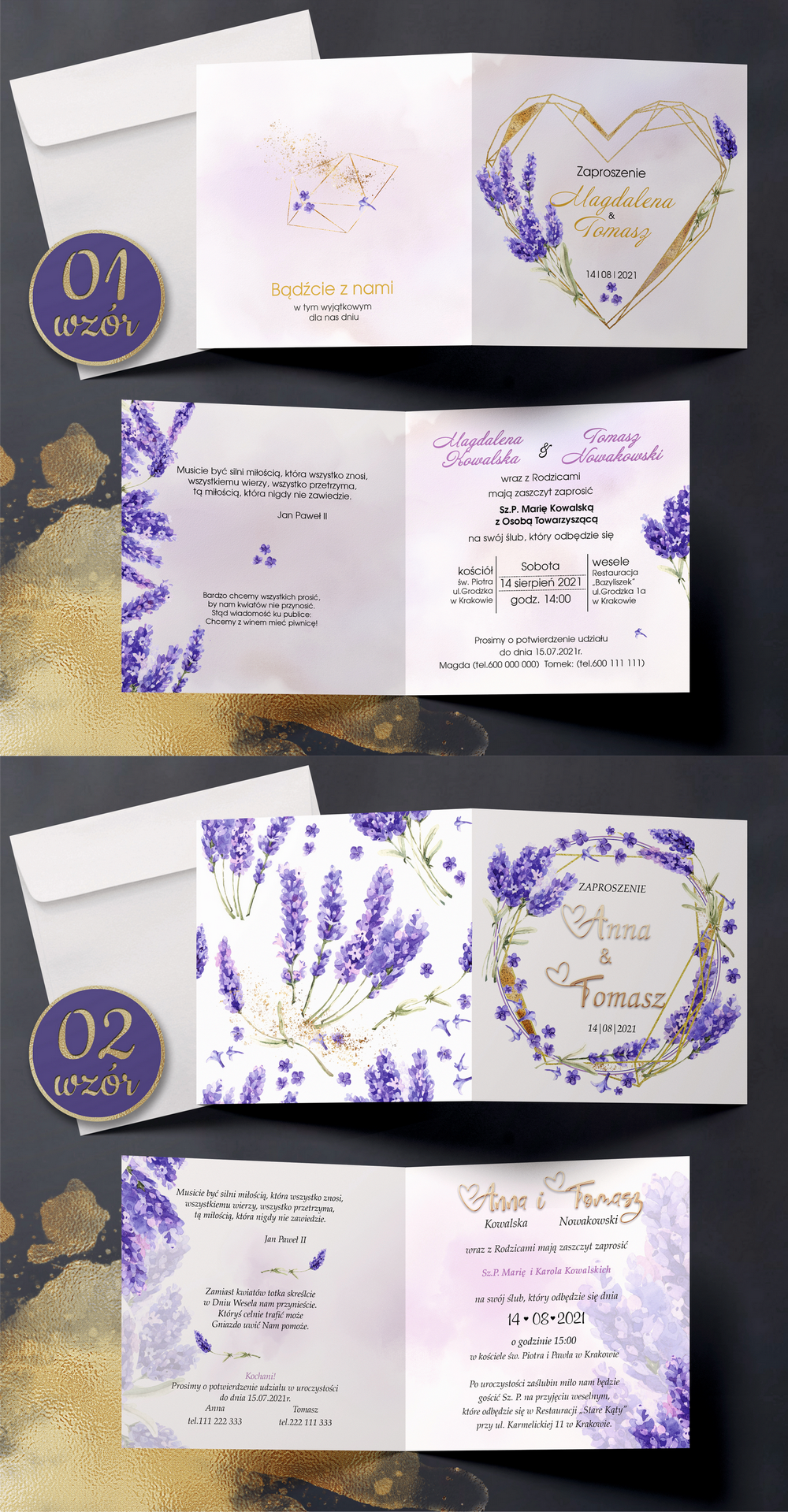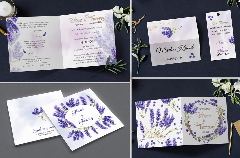 Zaproszenia ślubne KOLEKCJA "Lawendowe pole"