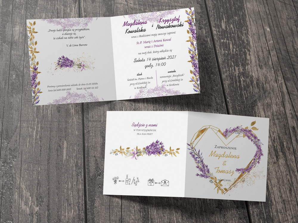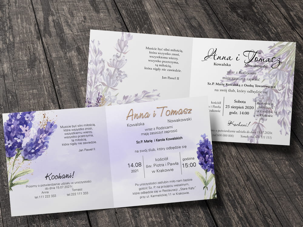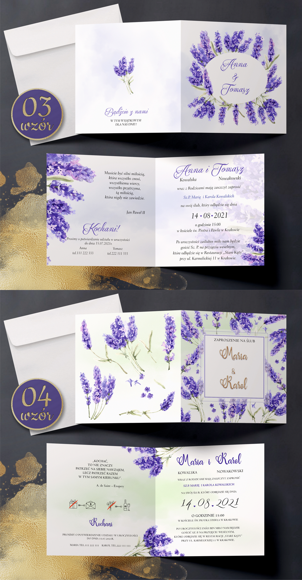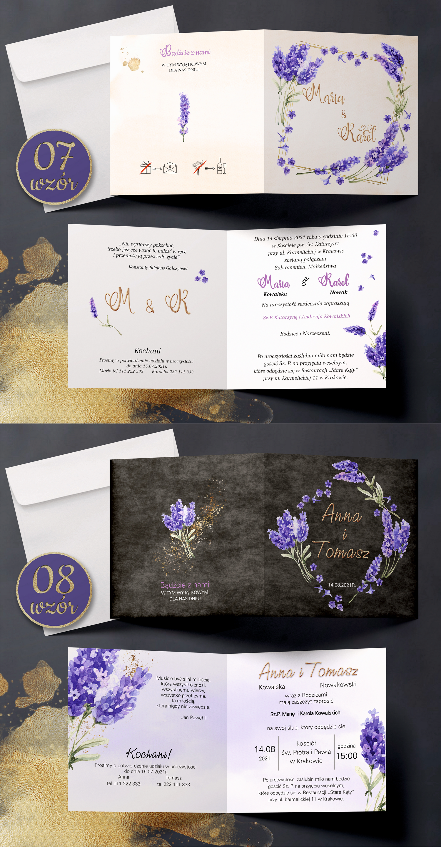 Zaproszenia ślubne KOLEKCJA "Lawendowe pole"